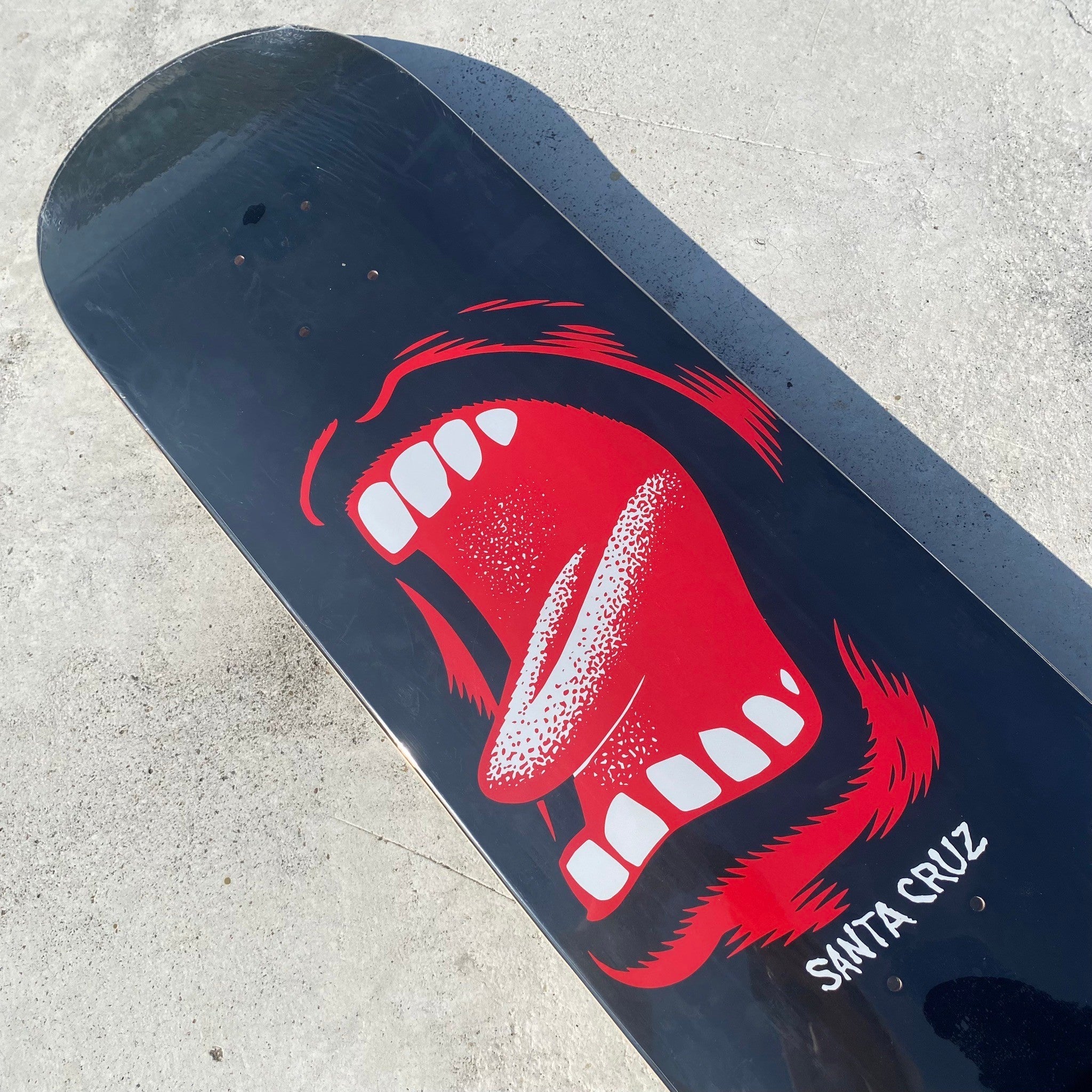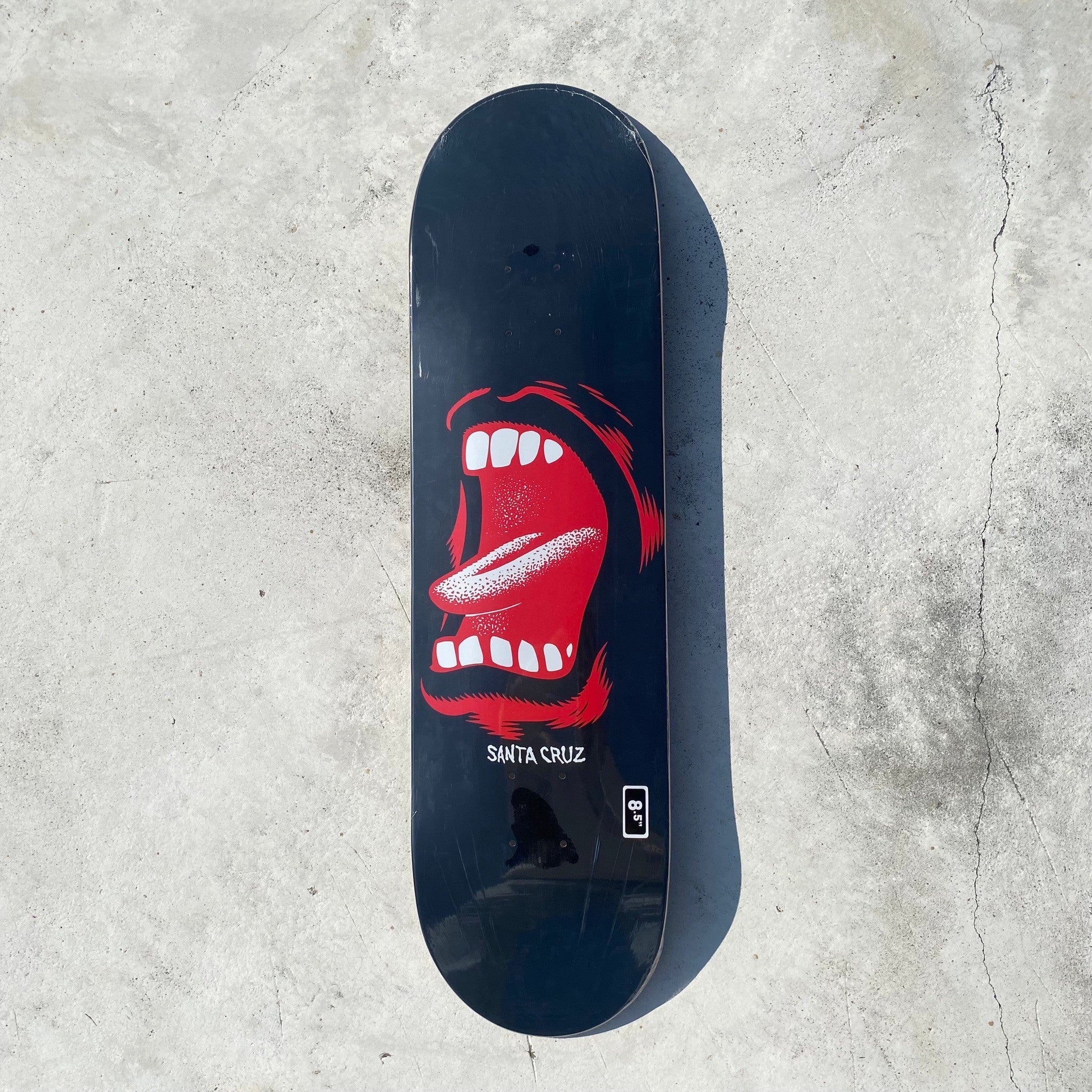 Santa Cruz Skateboards Screaming Mouth 7 Ply Birch deck featuring spot gloss graphics with black, red, and natural veneers.7 ply northern birch hardwood deck pressed using specially designed cross linked glue - creating a responsive and durable deck at an affordable price. ATV is a universal medium-depth concave with symmetrical nose and tail kick that performs well in all terrains on a wide variety of shapes - for anybody, anywhere.